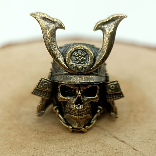Handcrafted Brass Samurai Skull Lanyard Bead – Paracord/Knife/EDC Keychain Bead
